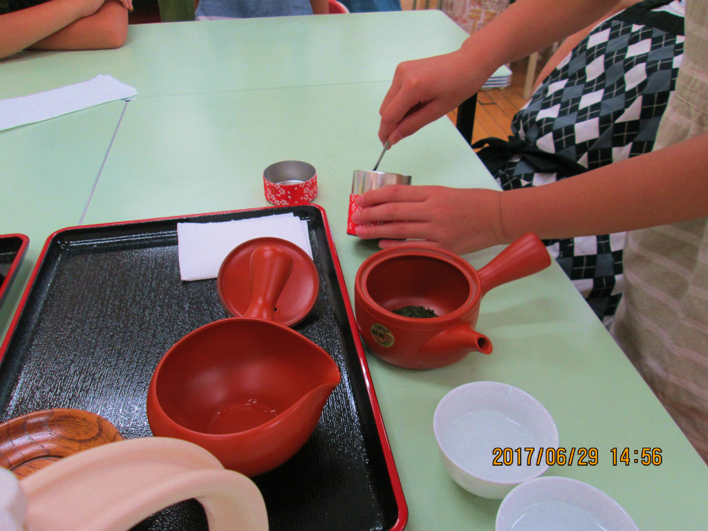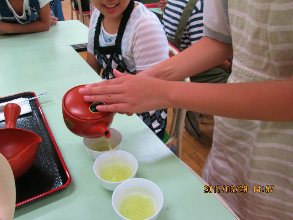 光和小では、「お茶をいれ、だんらんのときを楽しく工夫しよう」を目的に授業を行ないました。どのクラスも授業開始5分前には始められ、ゆとりを持って授業を行なうことが出来ました。授業の後の児童の感想や満足そうな笑顔に、私たちスタッフは幸せな気持ちをいただきました。(文責:江森 芳)