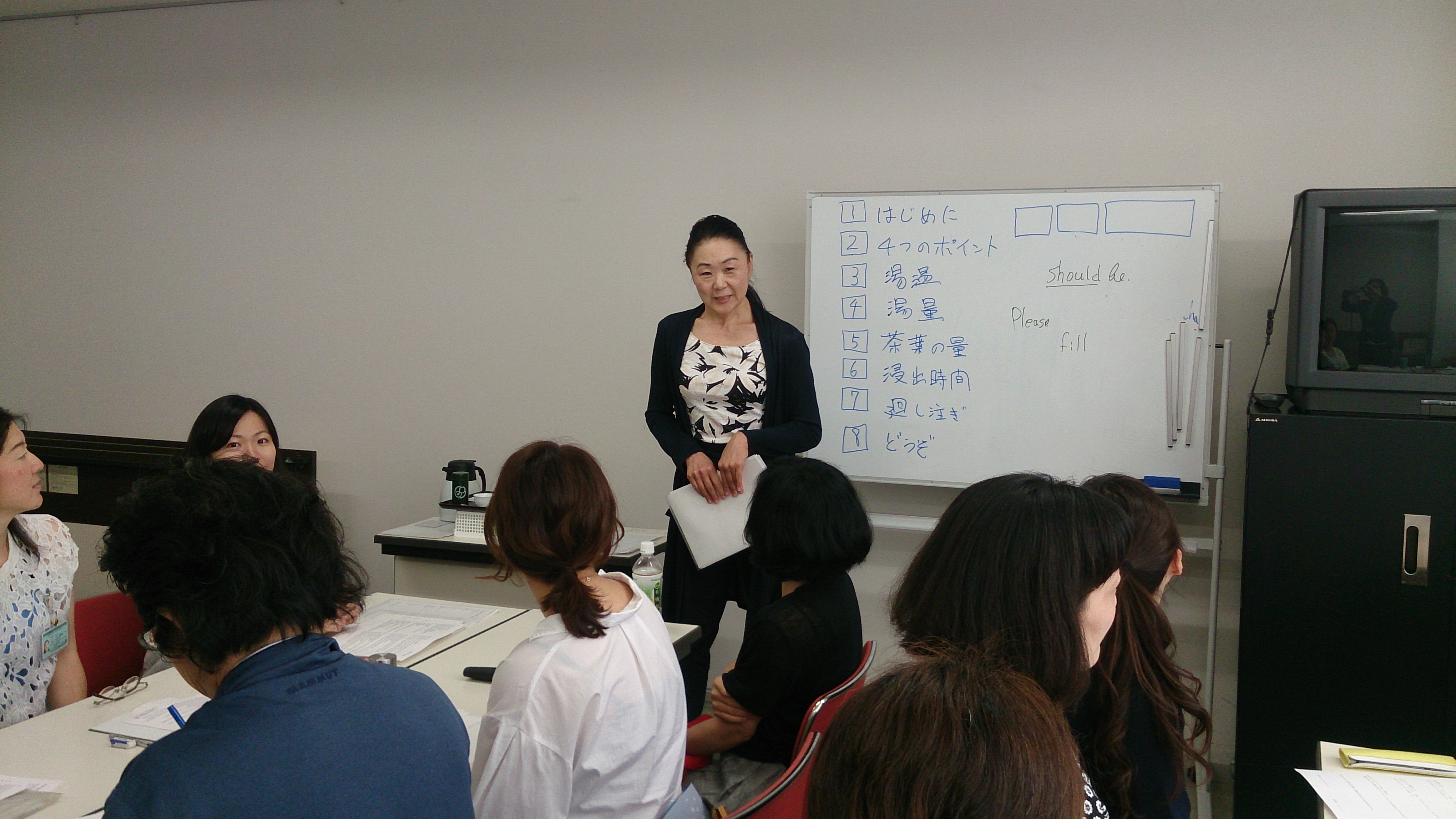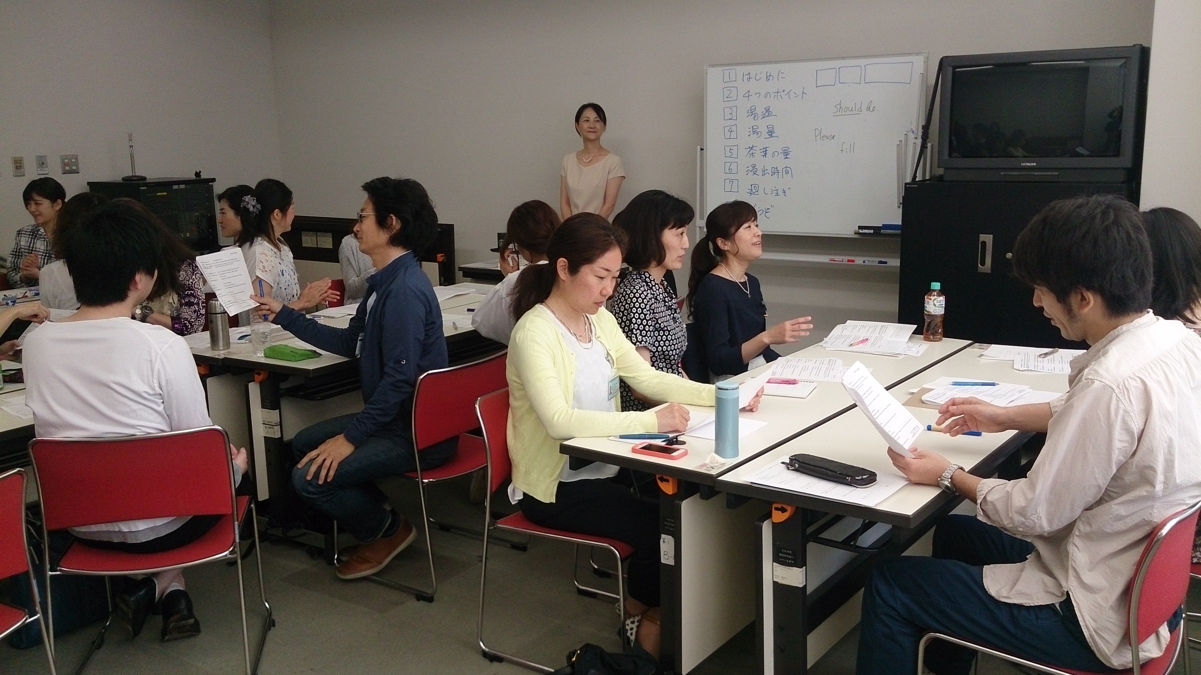 午前中の「英語勉強会」には、椿谷講師の指導のもと22名が参加され、ランチを挟んでの午後の「中国語勉強会」は中里講師により19名の参加にて進められました。両方参加された方が12名おられ、皆さま熱心に用語の発音練習や英語・中国語での淹れ方演習に取り組まれました。これからも言葉の壁を越えて、日本茶の素晴らしさを伝えていきましょう!(文責:宮口 香保里)