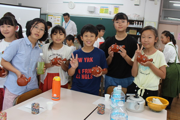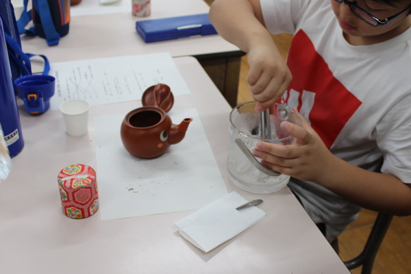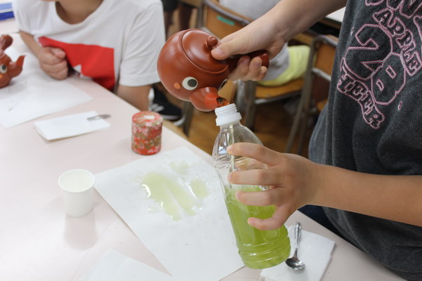 品川区立延山小学校5年1組・2組の家庭科授業「日本茶教室 マイペット茶作り」を実施。65本の様々なペット茶が出来上がり、市販のペット茶や友達のペット茶と水色や味などを比較しながら試飲をした。使用した急須(急須君)は各児童にプレゼントした。(文責:今井久雄)