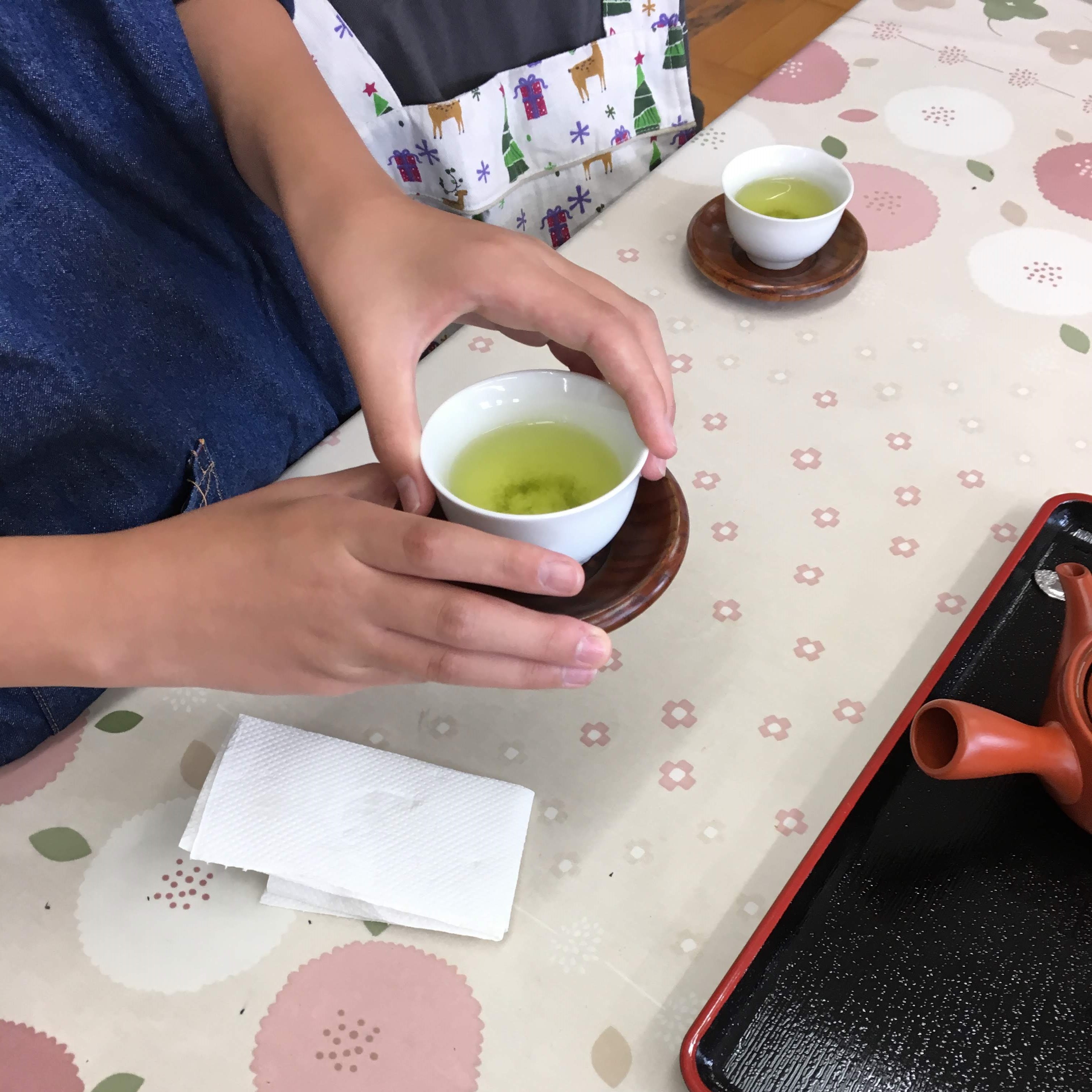 お茶の香りや手触り 湯呑みに8分目のお湯 5日のスタッフ