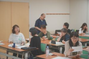 講師の指導に合わせてお茶を説明する用語を学んだあとは、実際に茶器を用いながら受講者同士でフレーズの練習を行い、和気あいあいとしながらも学びの多い講習会となりました。